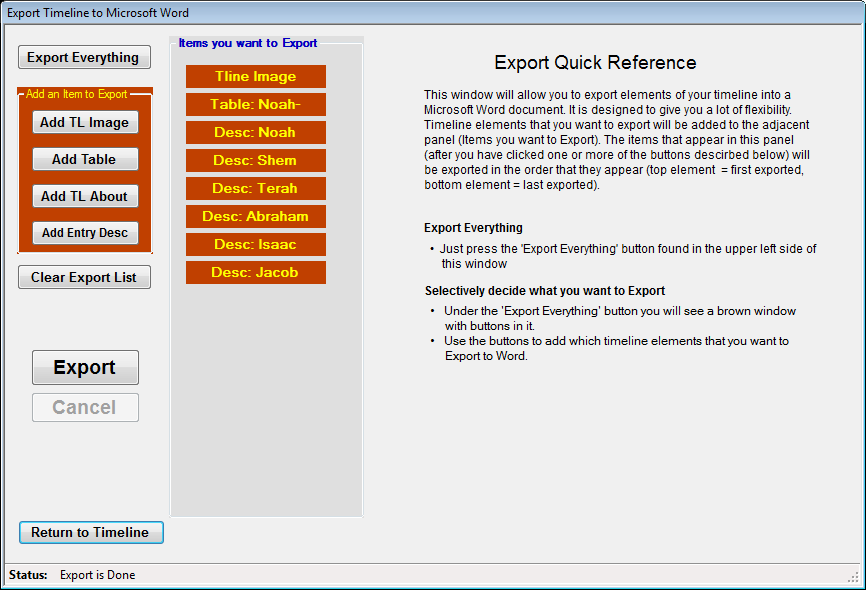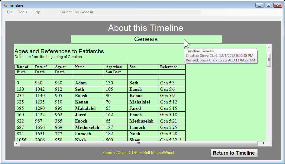 timeline entry. I plan on using it to assist me in documenting different Bible study topics. If you are using this program, please email me