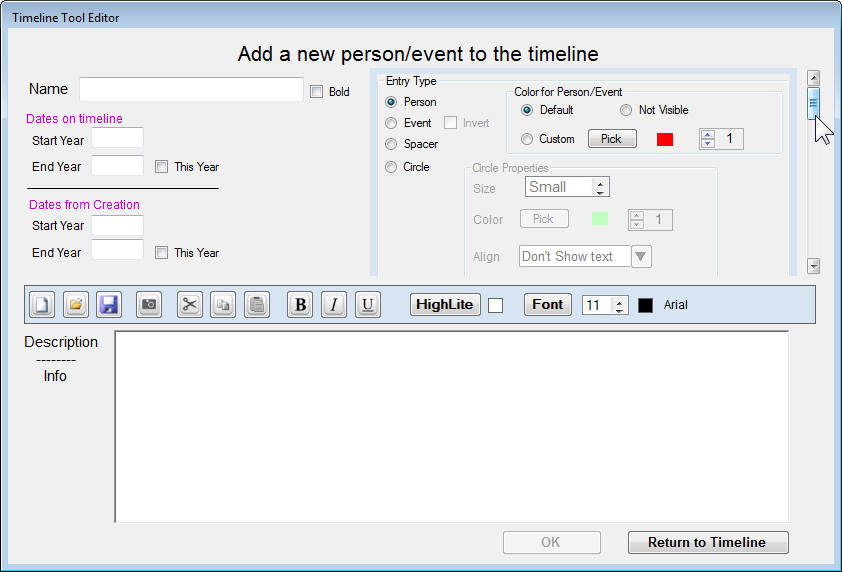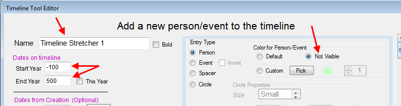entries settings. To do this you can create a special timeline entry (most often I use Person type) where I set the starting/ending