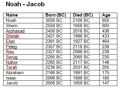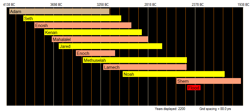 Timeline from Adam through Joseph along with a few major events (.e.g. Entry to Egypt, Exodus from Egypt, etc.)
