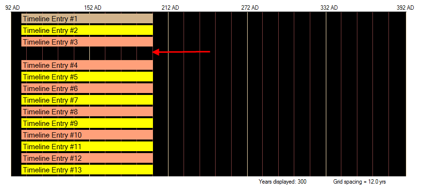 That I exceeded the Starting/Ending date of all the other timeline entries (100 AD to 200 AD).